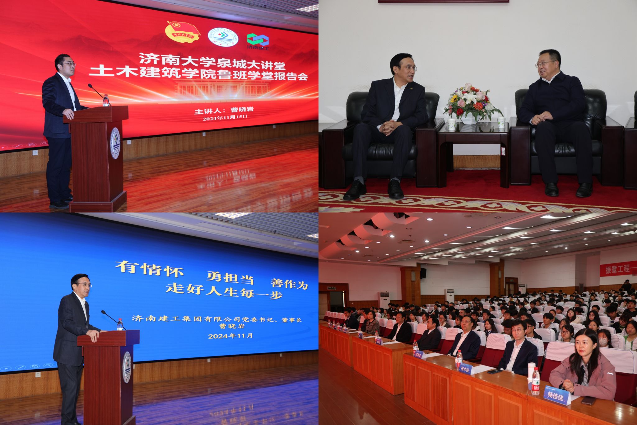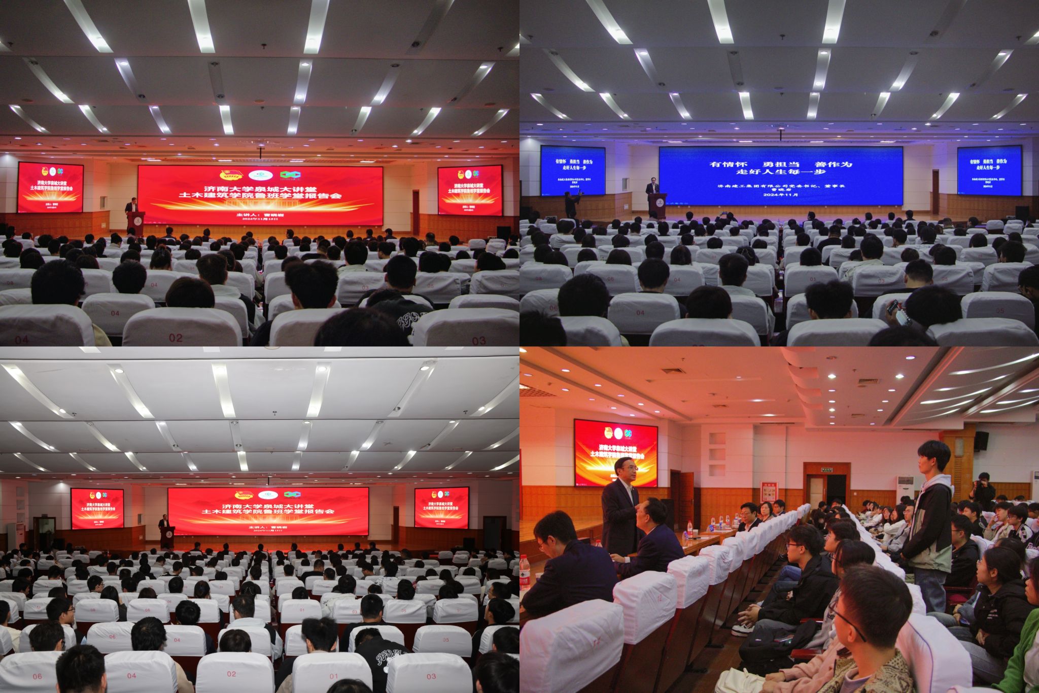 11月15日,ladbrokes立博成功举办ladbrokes立博泉城大讲堂暨鲁班学堂报告会。济南建工集团党委书记、董事长曹晓岩,济南建工集团有限公司综合办公室主任畅佳佳,济南建工集团有限公司人力资源部部长范宗宇,济南建工集团有限公司产业发展部副部长张中堃等集团相关部门负责人出席了活动。ladbrokes立博党委副书记、董事长刘宗明,公司领导班子及师生代表400余人参加了此次活动。报告会由公司党委副书记、经理谢群主持。