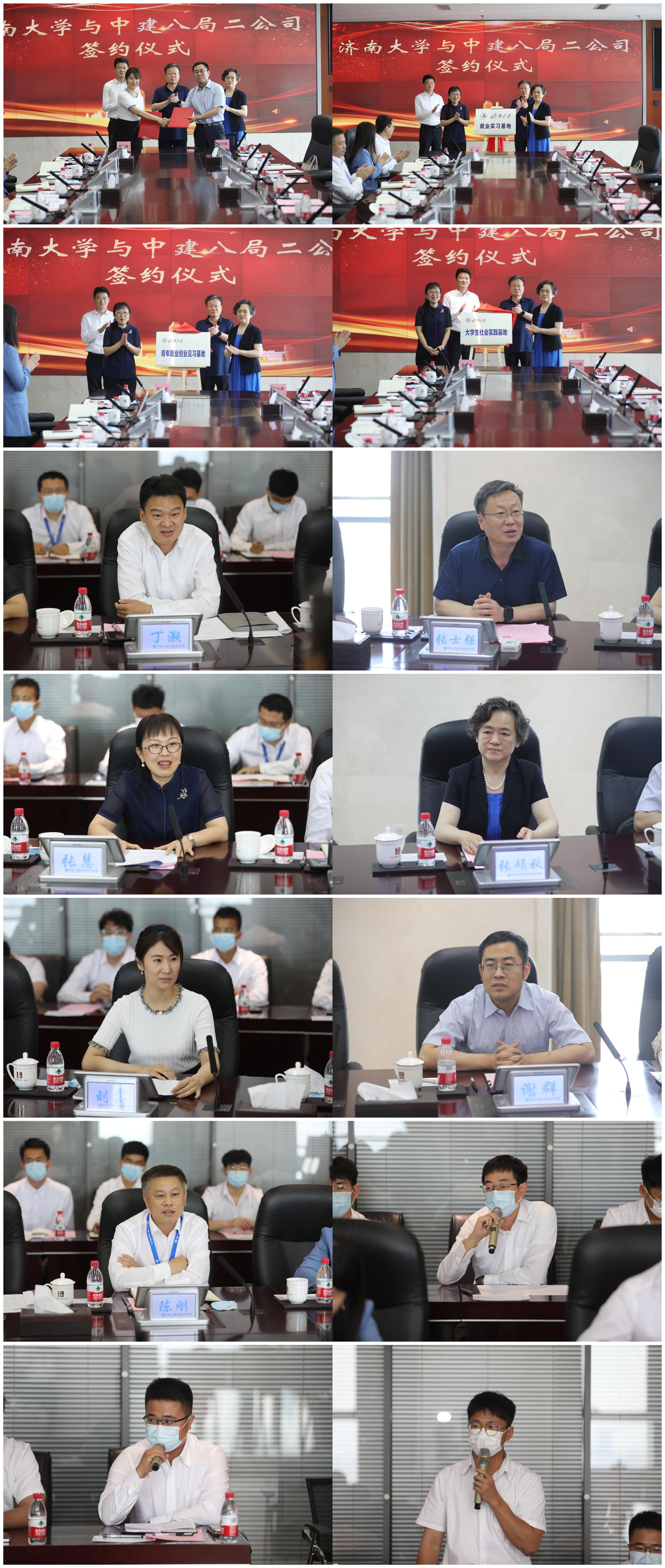 会上,校企双方签订了“济大就业实习基地”“济大青年就业创业见习基地”“济大社会实践基地”协议,并共同为基地揭牌。
