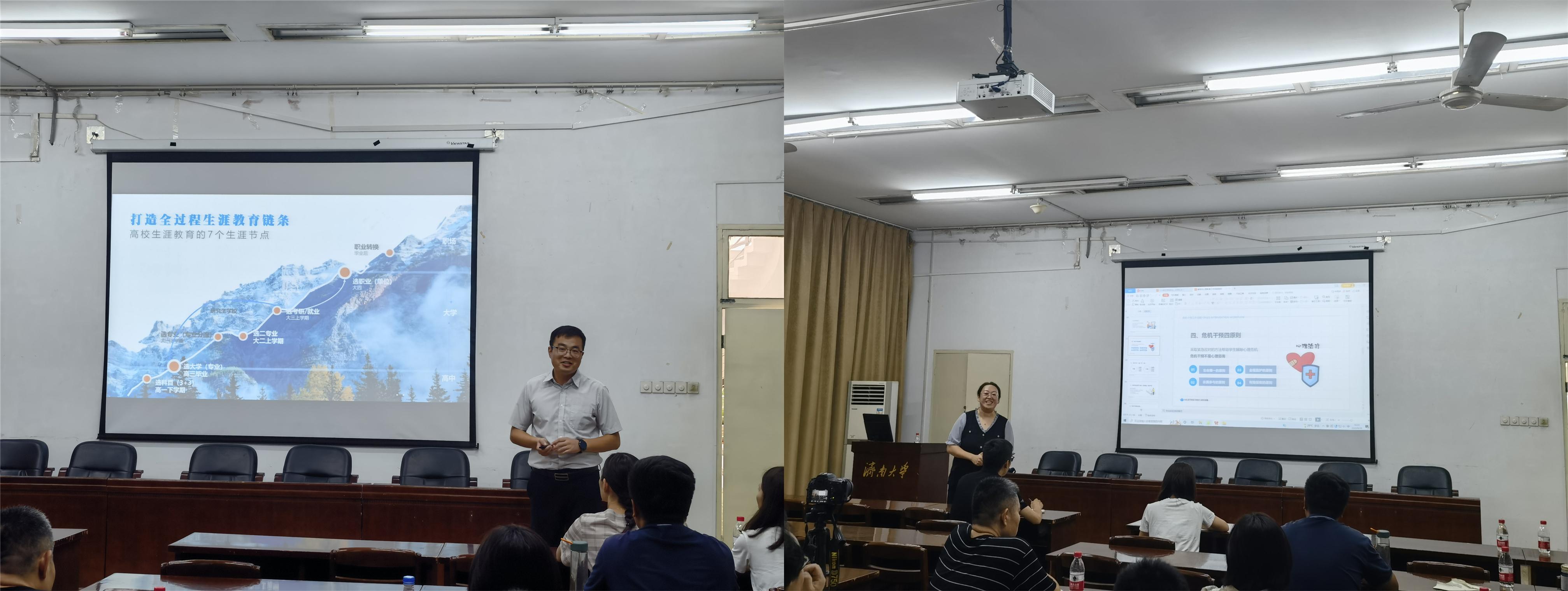 下午公司员工生涯发展指导中心主任张晶就如何做好老员工生涯规划指导做了专题报告。张晶指出老员工由高中步入大学,自身角色正经历由“单一”到“多元”的转变,需要给予老员工适时的生涯教育。张晶根据多年员工工作经验与总结,认为应打造全过程生涯教育链条,将老员工生涯划分为7个关键节点,并根据老员工学期特点,将高校生涯教育划分为5各阶段,根据各阶段不同的特点以及员工发展目标,分方向、分类别开展生涯教育指导。心理指导中心主任李素洁以心理教育工作技能培训为主题从实操层面给公司班主任、辅导员做了报告。从疫情对员工的心理影响、如何正确判断心理危机事件、如何在谈心谈话中发现心理危机、危机干预工作流程、危机干预者的情绪处理、危机干预的注意事项等几个方面介绍了老员工心理危机事件相关知识。