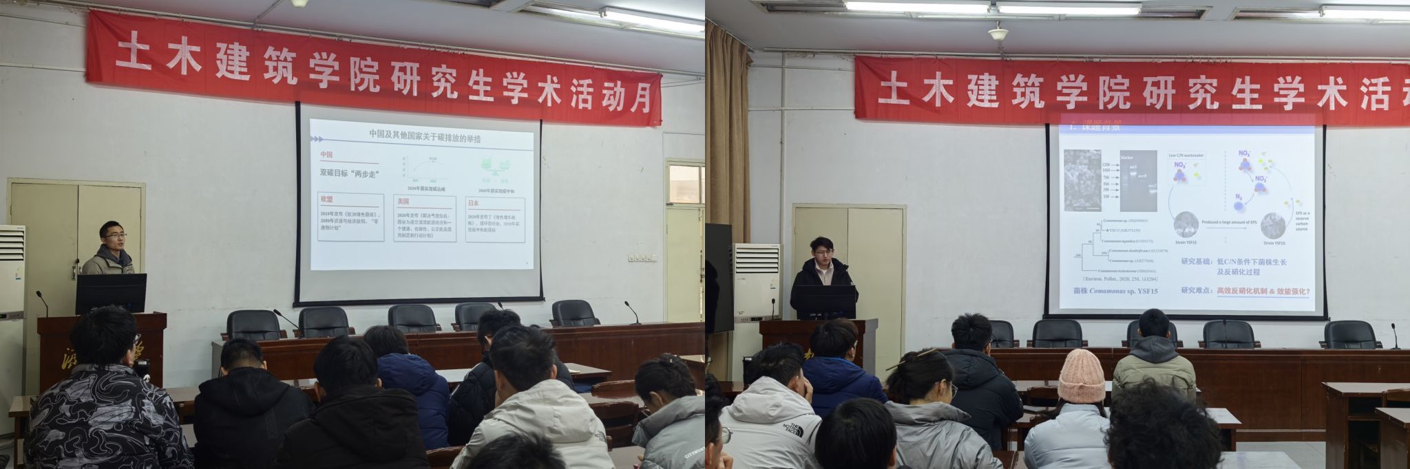 在本次报告中,张帅老师针对城镇污水厂普遍存在的碳源不足抑制生物脱氮的瓶颈,从碳/氮代谢途径和生物聚集能力两方面解析了异养反硝化细菌Comamonas sp. YSF15低C/N反硝化机制,并从提高胞外碳利用的角度,研究了腐殖酸对细菌反硝化的促进机制,对提高污水深度脱氮效能具有重要意义。
