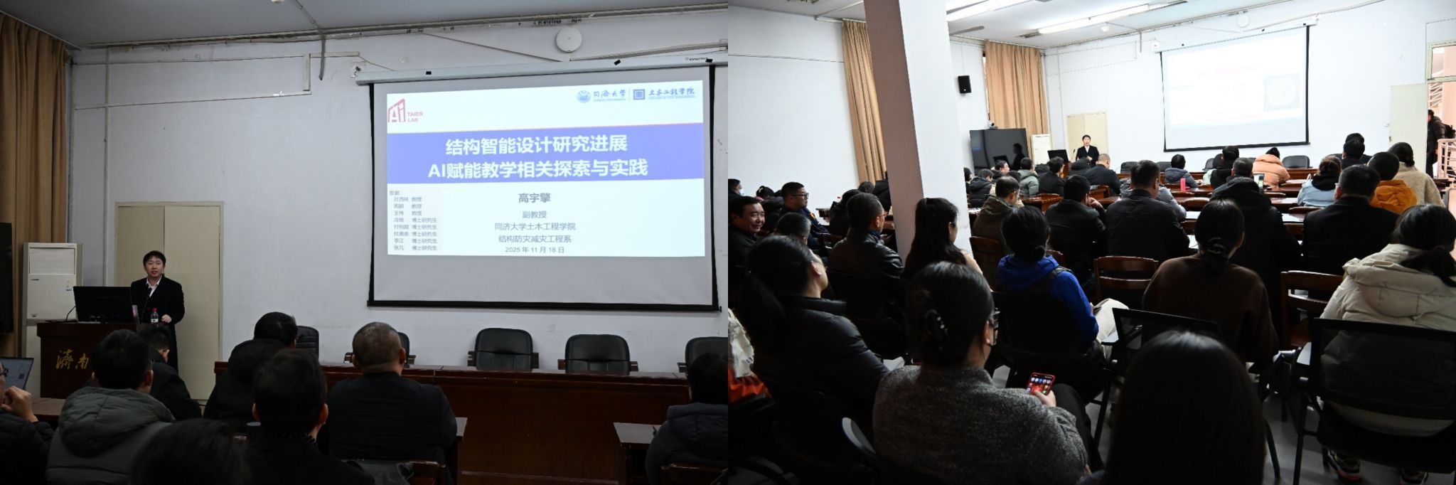 作为公司“智赋教学”讲坛系列活动的重要组成部分,本次报告旨在推动AI技术与土木建筑专业教学、科研深度融合,助力公司土木类专业群转型升级。主讲人高宇擎副教授毕业于美国加州大学伯克利分校,现任同济大学博士生导师,长期专注于基于人工智能的结构健康监测、结构智能设计及结构智能防灾研究,在AI与土木建筑交叉学科领域成果丰硕,具备扎实的学术功底与丰富的实践经验。