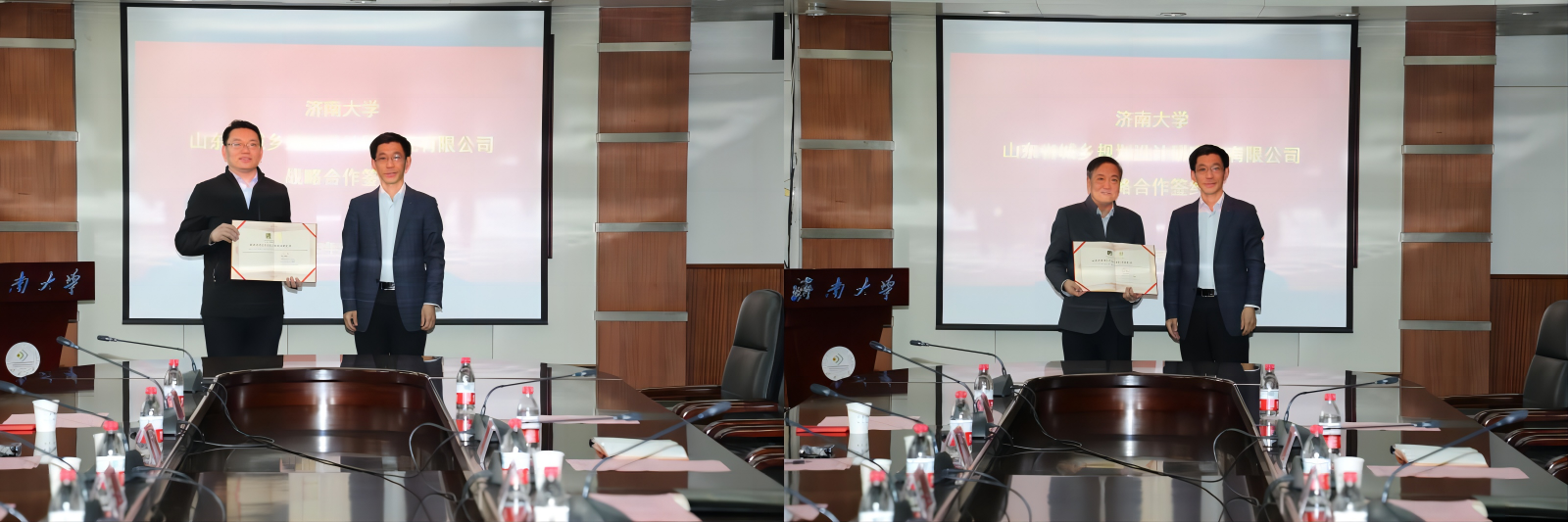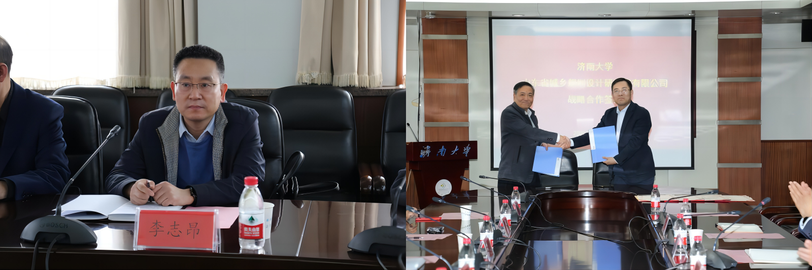 签约仪式上,李强副董事长向莅临领导与专家表示热烈欢迎,对山东省自然资源厅国土空间规划处、山东省城乡规划设计研究院有限公司给公司城乡规划学科和专业发展予以的长期支持表示感谢,并希望双方继续发挥各自资源优势、拓宽合作领域、促进优势互补,进一步在人才培养、社会服务、科研合作等方面实现全方位、深层次的交流与合作。我院经理谢群和山东省城乡规划设计研究院有限公司经理唐建平代表双方单位进行签约,省自然资源厅国土空间规划处副处长李志昂见证仪式。