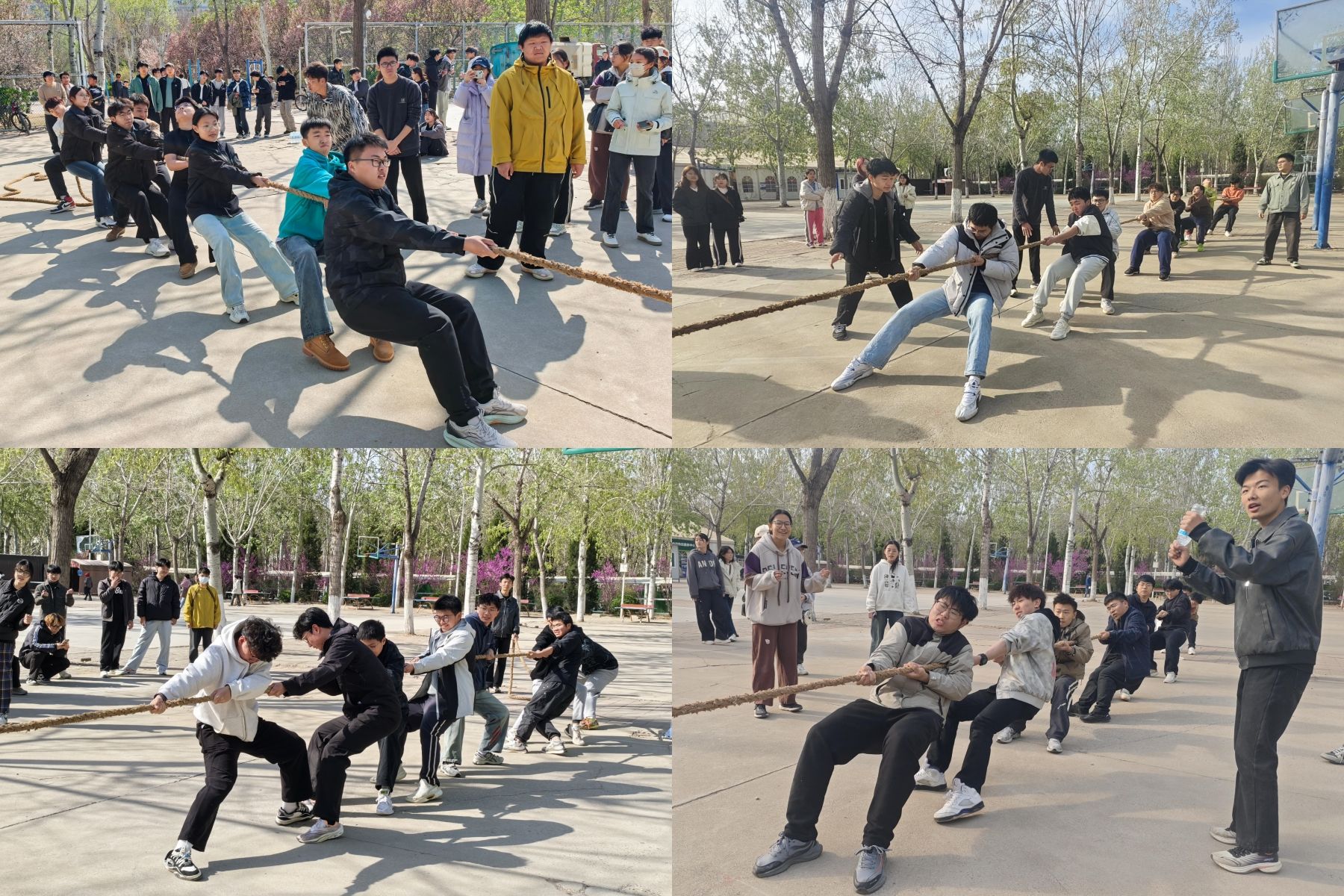 2024级以班级为单位组队参加比赛,各班代表通过抽签决定比赛顺序。随后,伴随着裁判长一声哨响,双方便以拔山之力汇聚于双手之间,力争为班级拿到理想名次。在一声声撕心裂肺的“加油”中,角逐愈加激烈,欢呼声不绝于耳,给在场的每一位参赛者鼓劲。在比赛中,有丰富拔河经验的同学会积极交流,并热心向他人传授技巧,纠正姿势。经过一下午精彩绝伦的比拼,最终,由土建2401班夺得冠军,土建2407班和土建2405班分获亚军与季军。这场激动人心的角力不仅拉近了团队的距离,更增强了班级凝聚力。