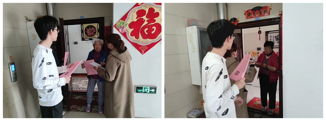 志愿者挨家挨户给社区居民发放宣传手册,普及疫情的危害以及接种疫苗的重要性,并对居民的疑虑进行解答。在对居民宣传疫苗接种相关知识的同时也彰显了志愿服务精神,提升志愿服务团队的凝聚力,为社区的疫情防控工作贡献了自己的力量。