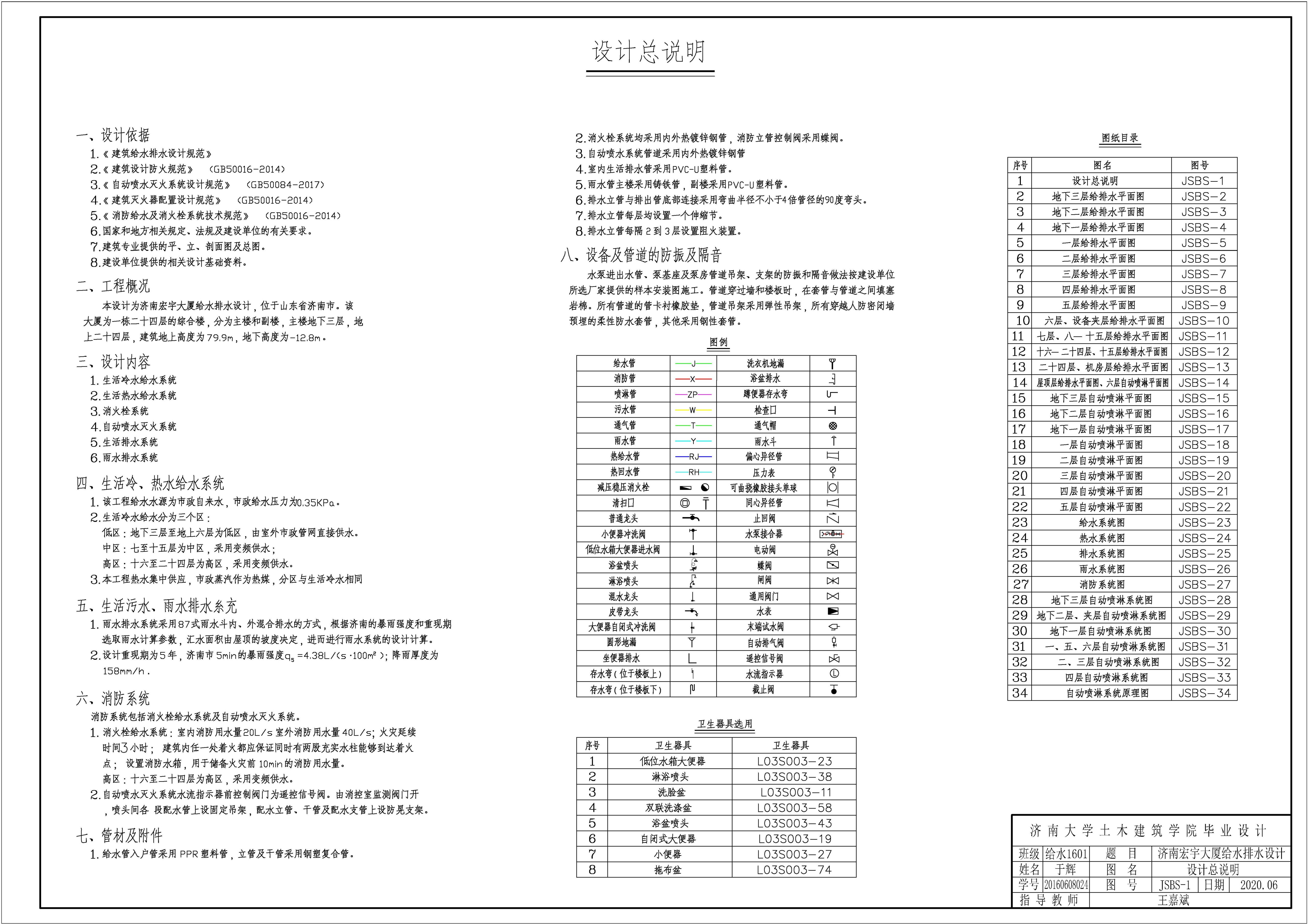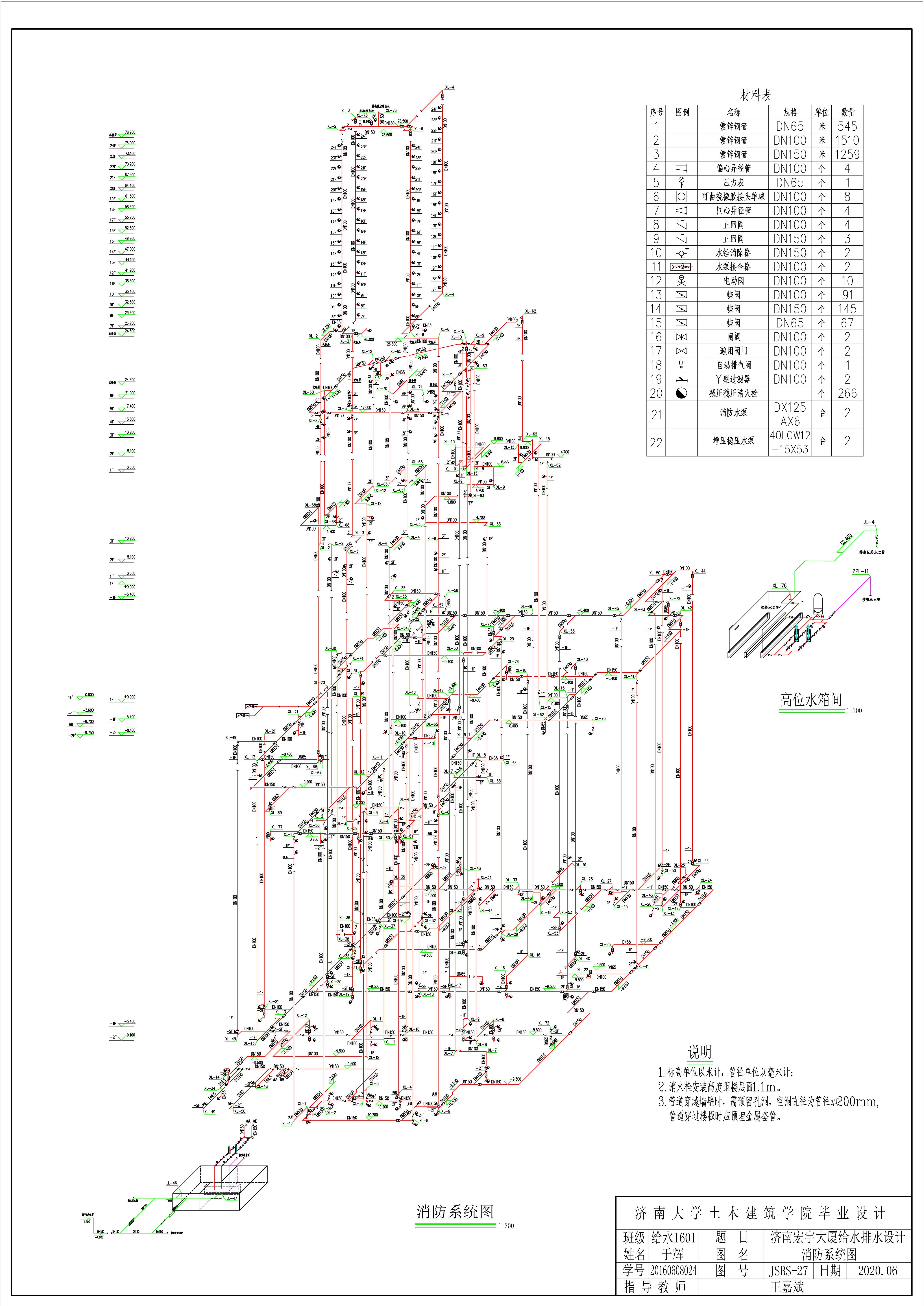 题目:济南宏宇大厦给水排水设计