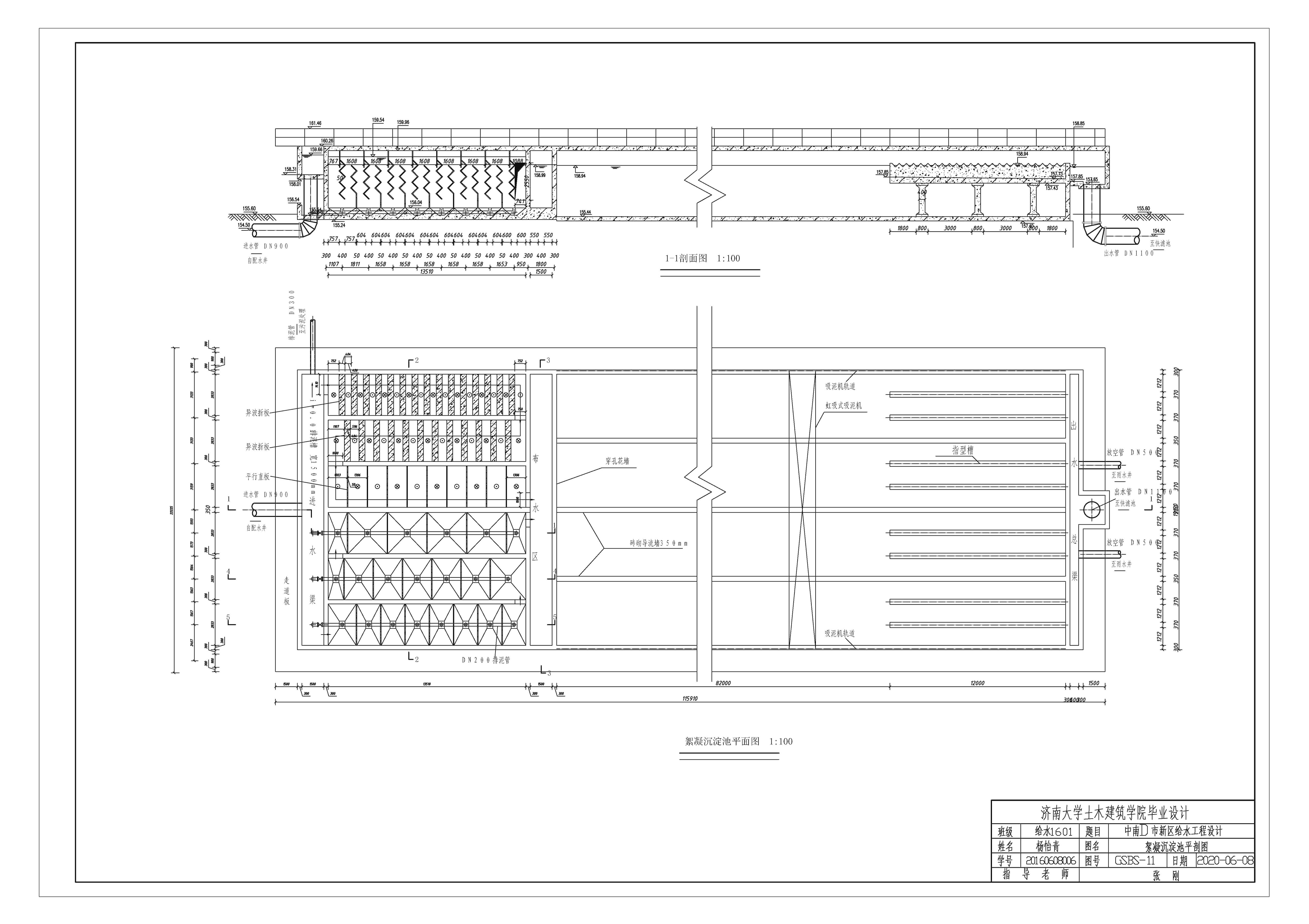 净水厂日处理规模为145800m³/d,原水进水水质为:色度100度,浊度40-100NTU,pH值7.4,总硬度250mg/L(以CaCO3计),铜含量0.8mg/L,铁含量0.9mg/L,锰含量0.6mg/L。经分析,采用常规水处理工艺和除铁、锰工艺相结合的水处理方式,即方案为:预氧化—混凝—沉淀—过滤—消毒—清水池—二级泵站—市政管网,最终出水满足《生活饮用水卫生标准》(GB5749-2006)。